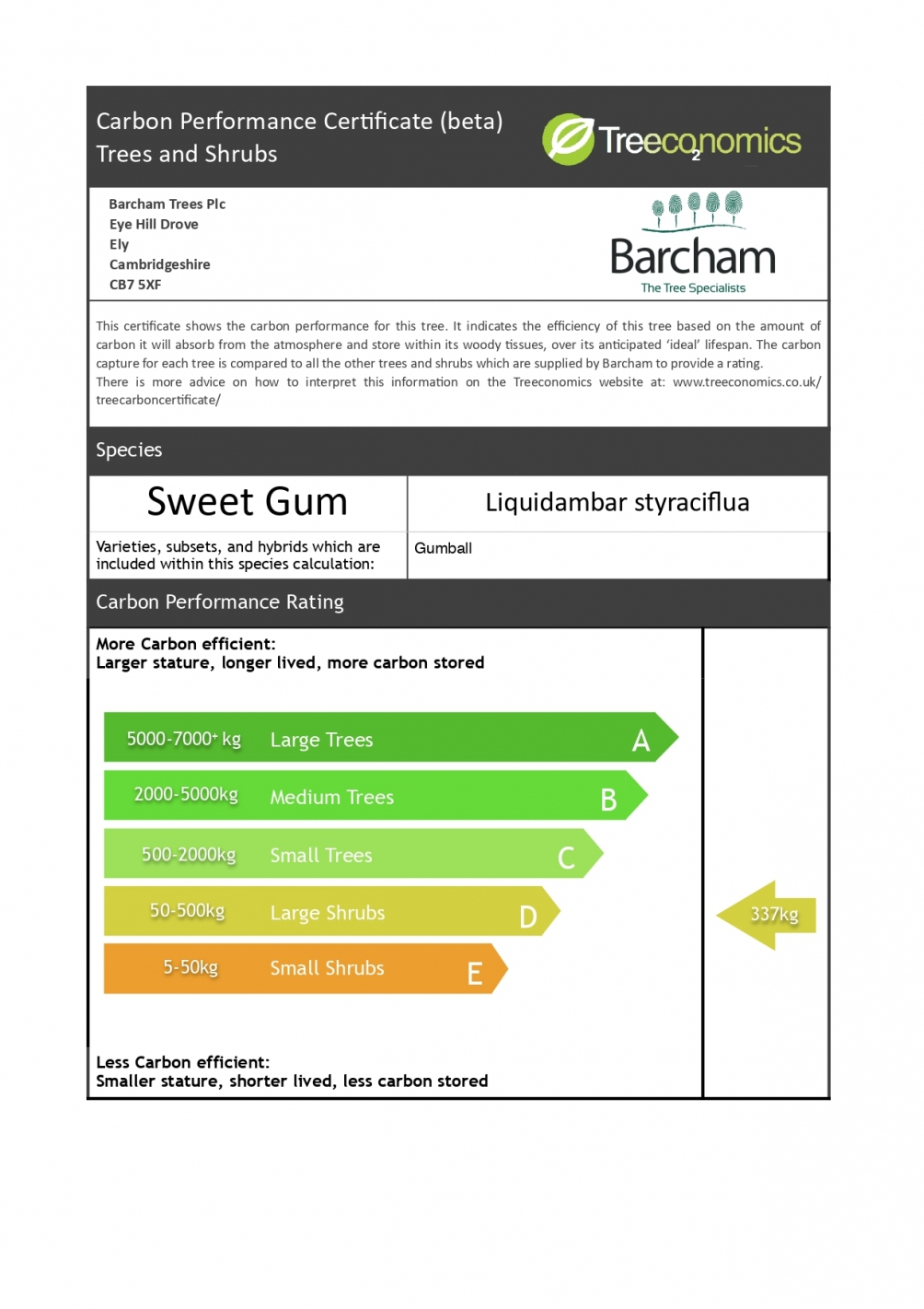 Current stock of Liquidambar sty Gumball -