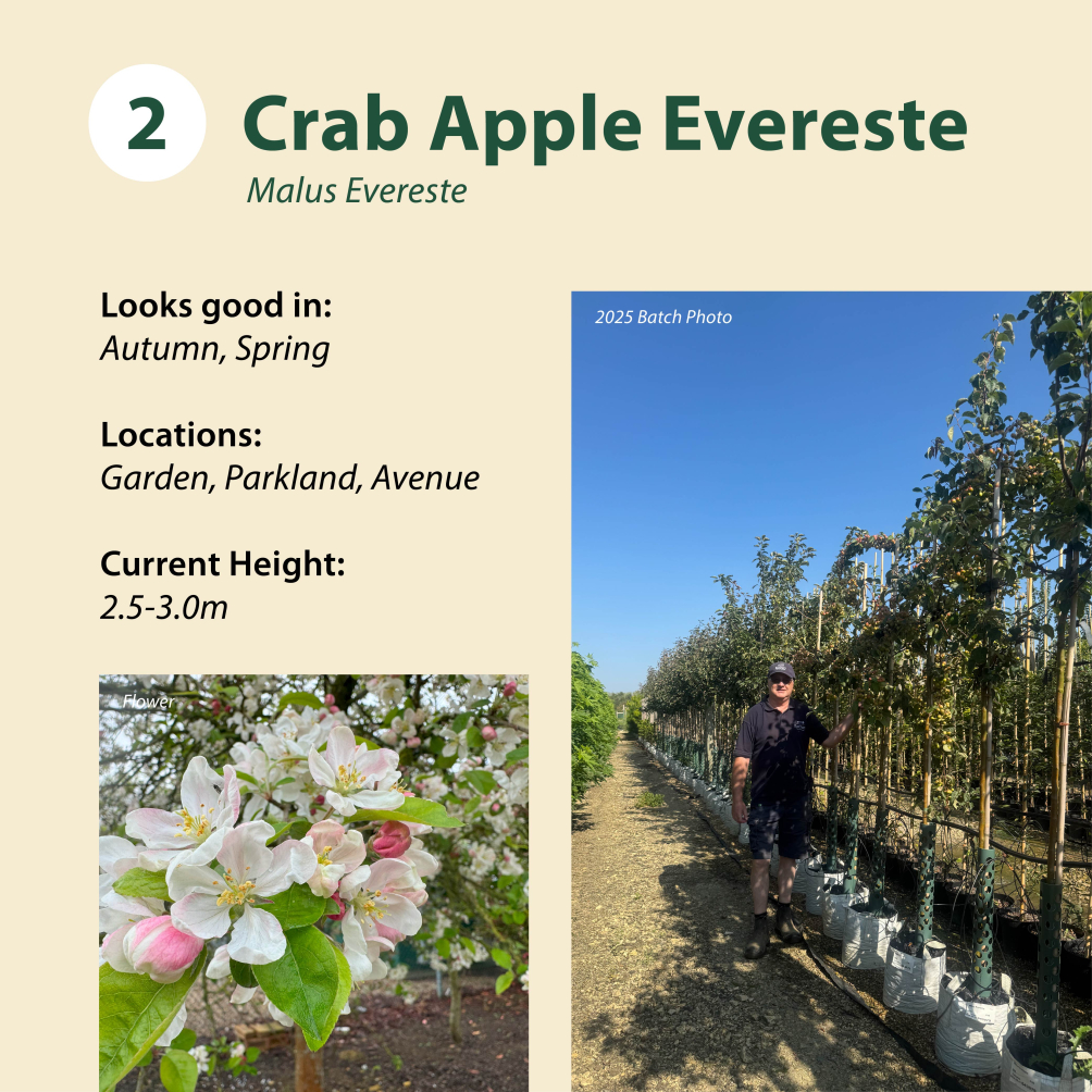 Tree 2: Crab Apple Evereste / Malus Evereste ~ 2.5-3.0m -