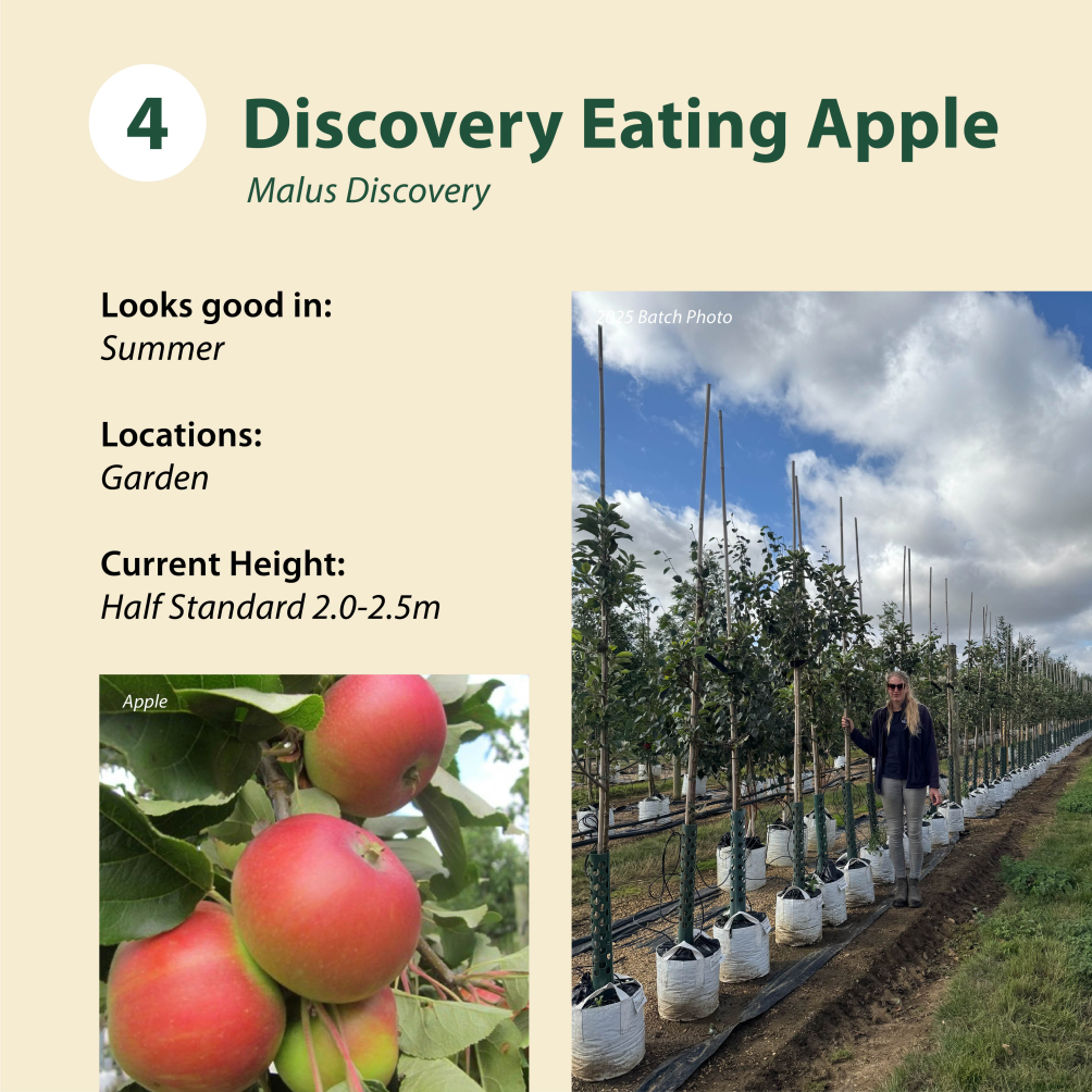 Tree 4: Discovery Eating Apple / Malus Discovery ~ Half Standard 2.0-2.5m -